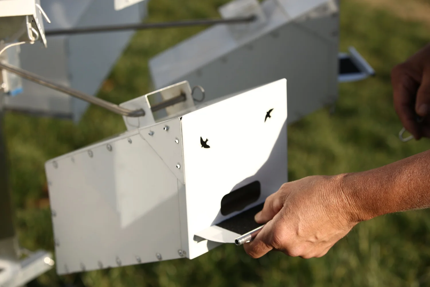 Discharge opening works with the martin openings in door panel to provide ventilation in addition to allowing nest debris, parasites such as blowfly larvae and water to fall from the box during normal activities and gravitational forces.