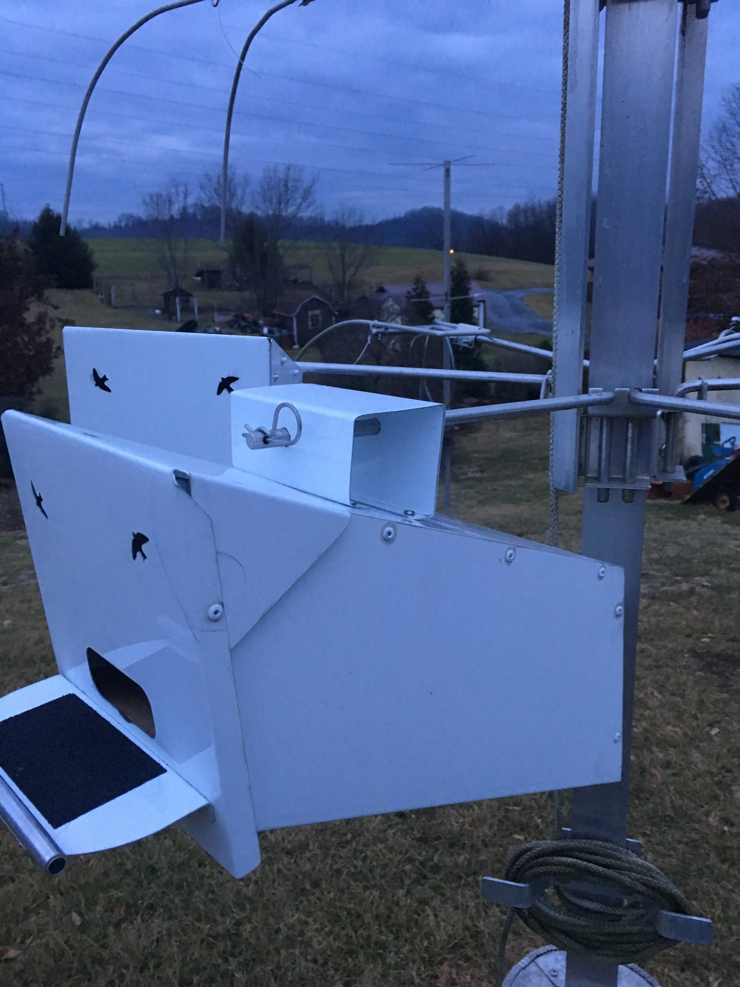 After a loss of martin numbers due to Owl disruptions I set out to totally re think, re invent and modernize housing for my purple Martins. I incorporated features and innovations presented in the Purple Martin Update over the past 20 + years as well as my own ideas, to come up with what I call the ChirpyNest hygienic nest system.